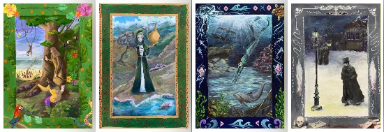 Работы 5 класса по предмету «Станковая композиция» по теме «Иллюстрация к классическим произведениям литературы с использованием орнамента». Преподаватель-Хаустова А.Ю.