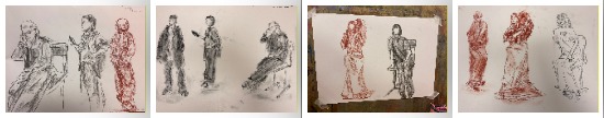 Зарисовки человека в мягком материале, в исполнении 2 «Г» класса предпрофессиональной программы «Живопись». Ищем движение в фигуре, учимся быстро схватывать позу. Преподаватель-Полякова Д.В.