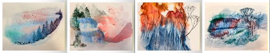Работы в технике «Акватипия» учащихся общеобразовательной развивающей программы «Живопись». Старшая группа,2-й год обучения.