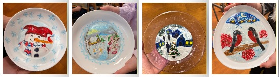 Ребята 2-го класса расписали тарелочки к новому году. Тема «Зимние мотивы».